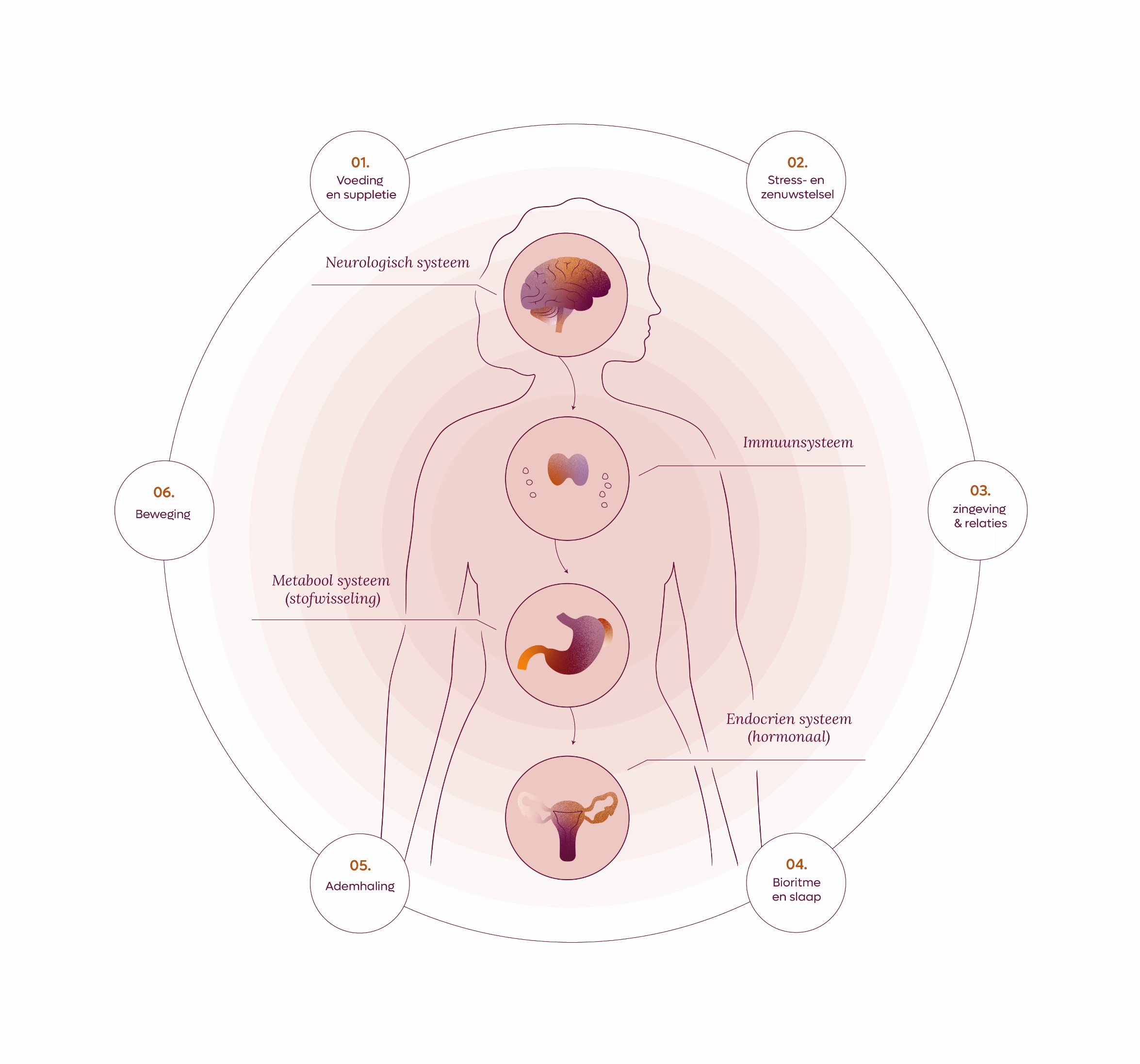 Wij herstellen de samenwerking tussen het hormonale, neurologische, metabole en immuunsysteem, zodat jouw lichaam kan schakelen van overleven naar voortplanting.